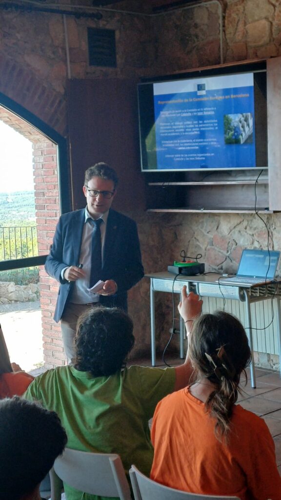 El director de la Representación de la Comisión Europea ofreció una sesión formativa a medio centenar de jóvenes residentes, quiénes pudieron conocer de primera mano y por medio de una voz acreditada , como funcionan las instituciones de la Unión Europea, qué papel ejerce la Comisión Europea como poder ejecutivo y su trabajo conjunto con el Parlamento Europeo. Resultó una sesión muy didáctica, durante la cual se desarrolló cuál es el papel de la UE en el mundo, en las áreas económica, política y en el terreno de los derechos humanos .