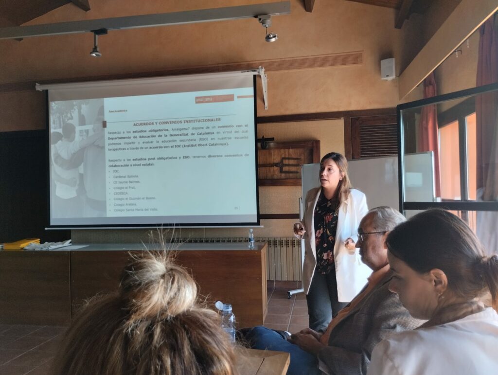 En la biblioteca de la Escuela Terapéutica (E.T.E) de Can Ros, y con la participación de un grupo de chicos y chicas residentes, además del equipo de dirección y profesional de Amalgama7 y de la E.T.E de Can Ros (en las áreas clínica, académica y socioeducativa), además de representantes de la Fundación Portal, se desgranó el modelo de abordaje integral bio-psico-social y legal que ambas entidades impulsan desde la colaboración. Se pusieron de relieve los​ buenos resultados académicos, clínicos y socioeducativos, que lo han hecho convertirse en un modelo europeo de referencia en atención a la salud mental infanto-juvenil.